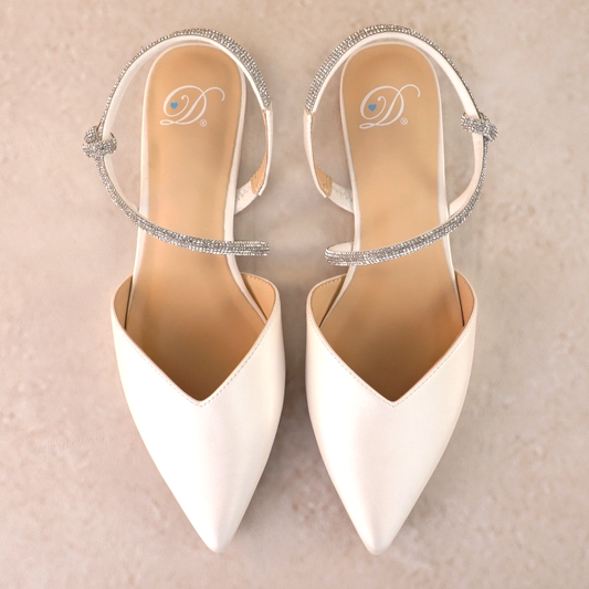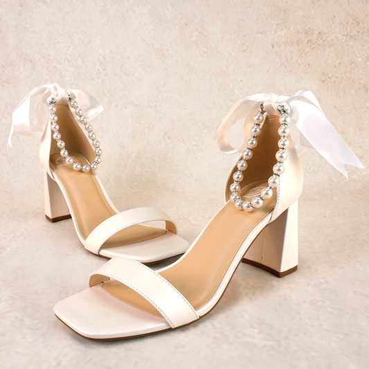 Morgan Satin Block Heels with Pearl Ankle Strap