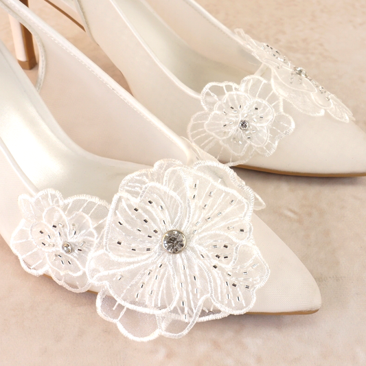 Minta White Lace Flower Stiletto Heels