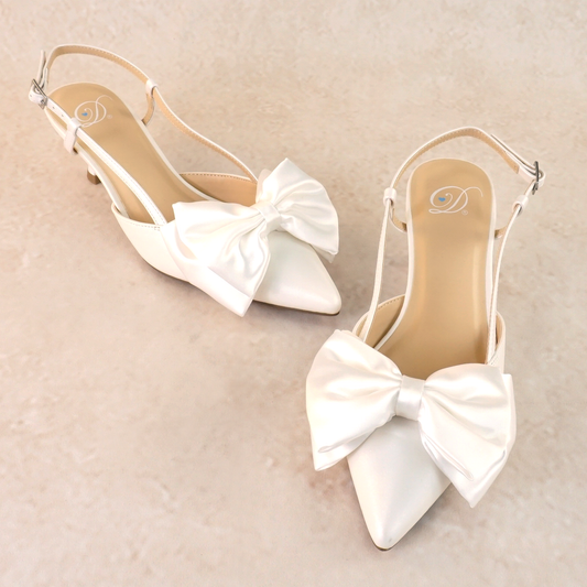 Lada White Satin Bow Kitten Heels