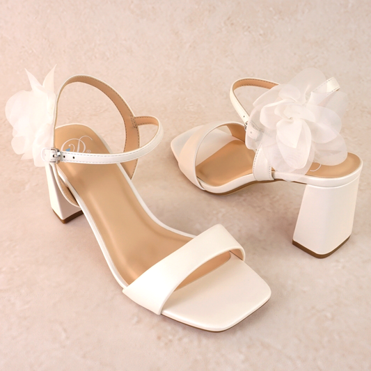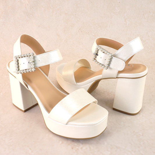 Morgan Satin Block Heels with Pearl Ankle Strap