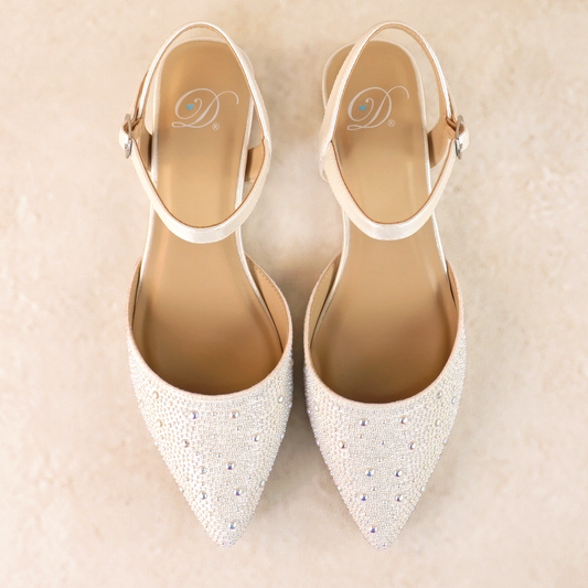 Cardea Block Heels with Pearl and Rhinestone Twist (wide fit)