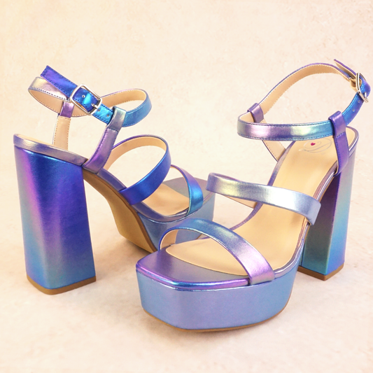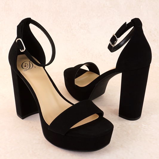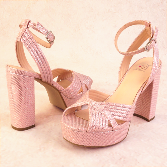 Morgan Satin Block Heels with Pearl Ankle Strap