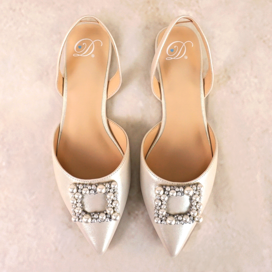 Leoni D'orsay Flats Pearl and Rhinestone Detail